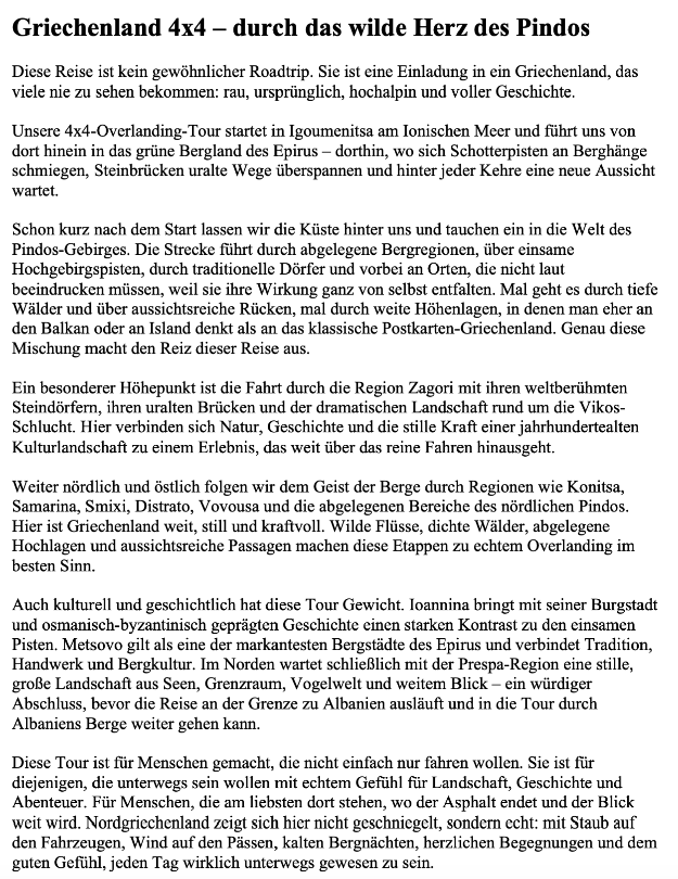 - Ich unterstütze Reiseveranstalter als erfahrener Guide bei der Durchführung anspruchsvoller 4x4- und Overlanding-Touren, vom Balkan über die Westalpen bis nach Nordafrika